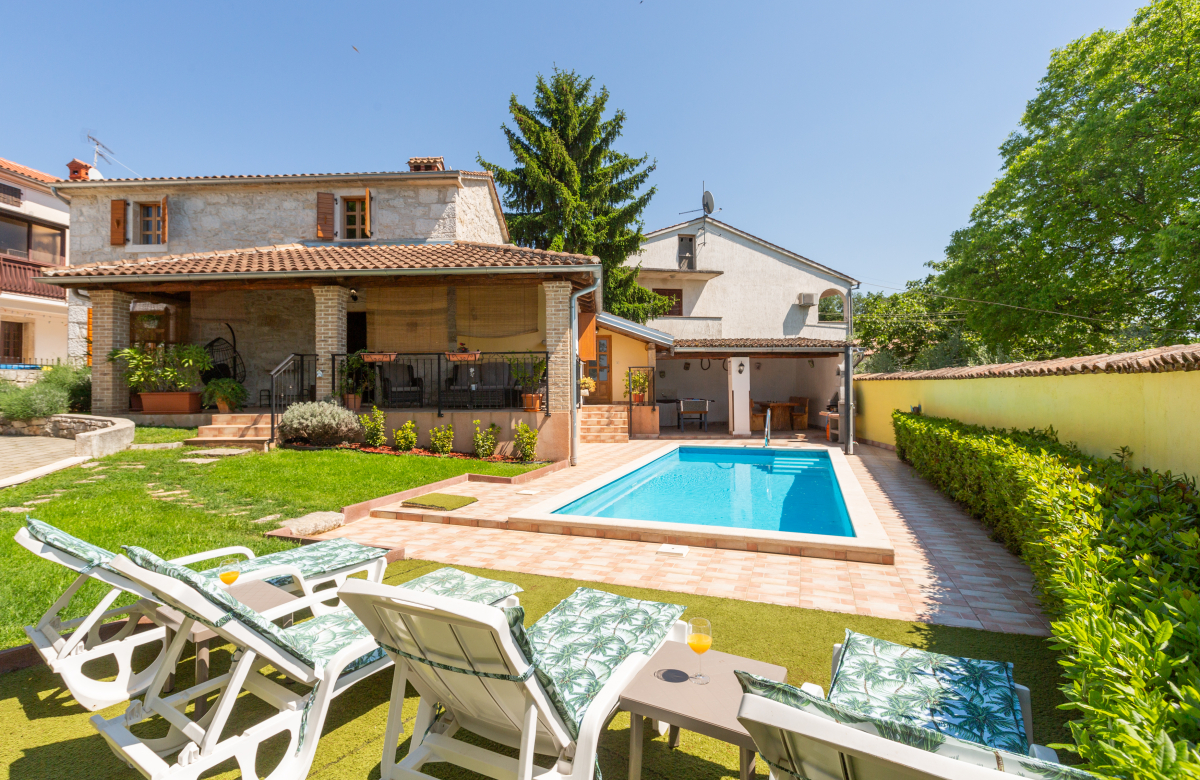 Villa Pelizzar is an authentic Istrian stone house near the picturesque fishing village Vrsar, the special reserve of the forest vegetation Kontija, with many cycling routes, and the Lim bay where there is a fish and shellfish farm.The house was renovated in 2010 and is set on its own enclosed property. The guests have a swimming pool of 21 sqm with sun loungers and parasols, covered summer kitchen with fireplace and dining table, children's playground and two parking spaces on disposal.Holiday home for 6-7 people of 110 sqm consists of ground floor with air-conditioned living room with sitting set with sleeping possibility for one child, dining table, fully equipped kitchen, separate toilet, bedroom with double bed and bathroom/toilet. On the first floor are two air-conditioned bedrooms with double bed and a shower/toilet. Please note this property does not accept youth groups or stag/hen parties. A youth group at this property is one comprised of individuals aged 26 or under. Do not book this property if you are a youth group or a stag/hen party, as your booking will be rejected post-booking, which may include on arrival at the property or during your stay and you will not be refunded.