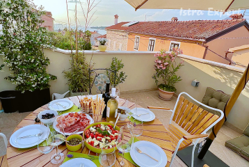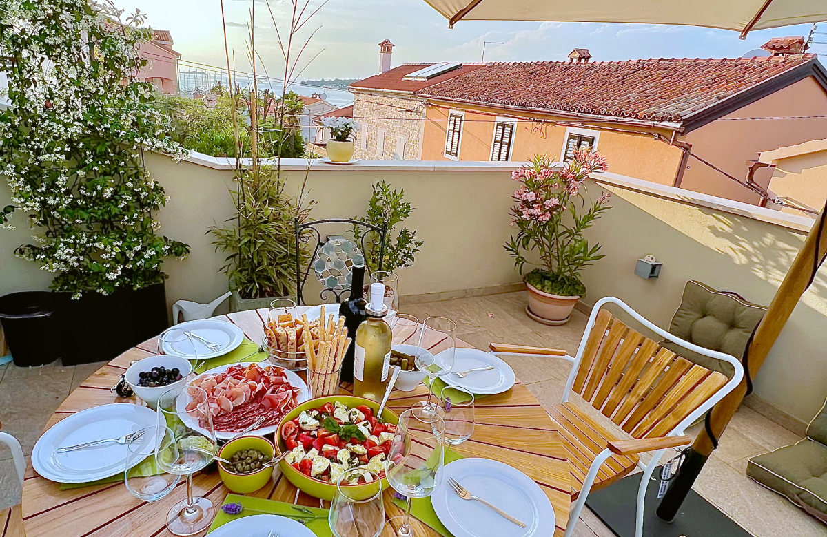 Which of us did not want to be in two different places at the same time? This original Istrian stone house and the beautiful coastal town of Funtana will give you this unique experience. In this fascinating vacation home, the boundaries between nature and a highly modern accommodation blend with all the comforts of modern living. The seemingly opposing elements complement each other in the most natural way. Wherever you look, weather inside between the originally textured walls surrounding your perfect vacation experience, or up on the spacious terrace feasting you eyes on the gorgeous sea views you will be greeted by stone and harmonious green hues.
